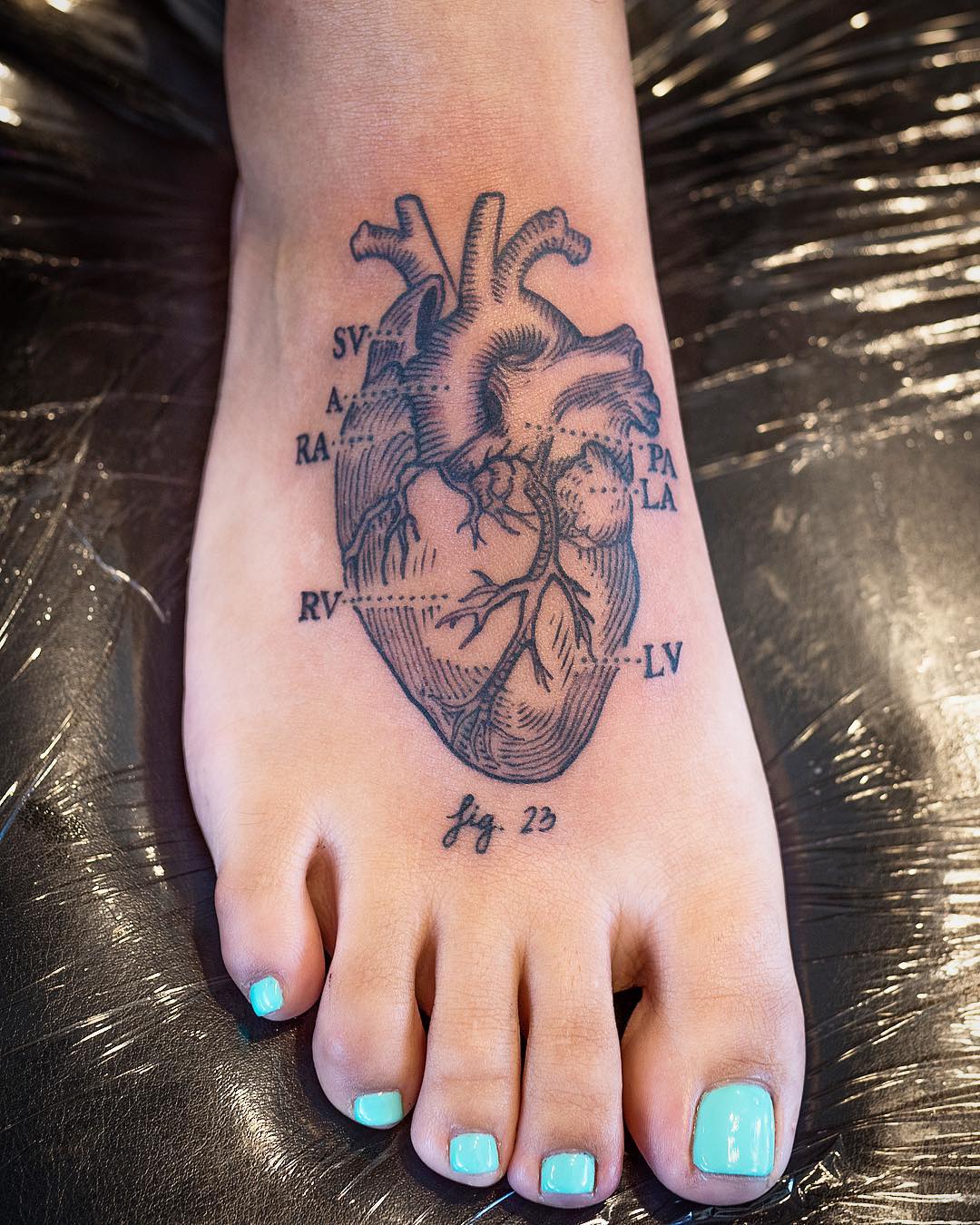 西安家立方做地理老师的云小姐脚背写实心脏纹身图案